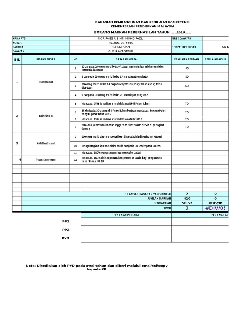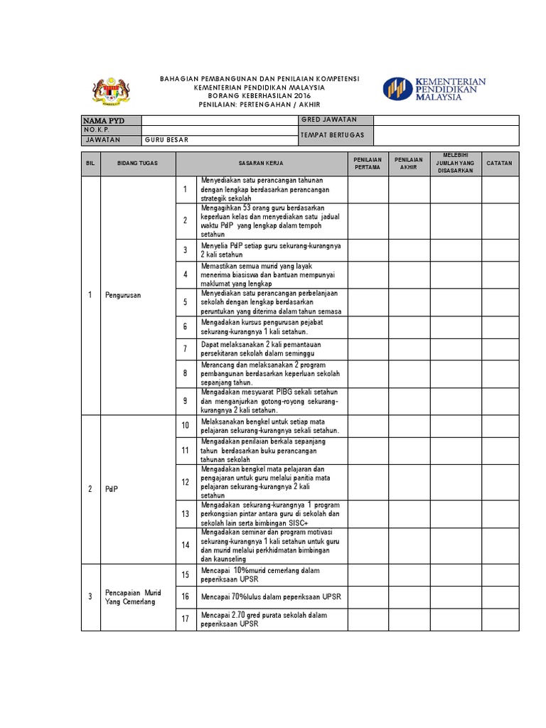 Borang Keberhasilan Djunaidah 2 2019 Bahagian Pembangunan Dan Penilaian Kompetensi Kementerian Pendidikan Malaysia Borang Markah Keberhasilan Course Hero from www.coursehero.com 05/02/2019 penilaian bersepadu pegawai perkhidmatan pendidikan borang keberhasilan tahun 2018 nama pyd norhaslina binti noordin no.k.p. Borang markah keberhasilan tahun … Use the download button below or simple online reader. Gambar ini diunggah pada friday 27th of april 2018 07:10:05 am. Borang keberhasilan guru sk tatau 2018. Ramai yang membuat menulis sasaran keberhasilan tetapi tidak merujuk panduan yang telah dikeluarkan oleh bahagian pembangunan dan penilaian kompentasi kementerian pendidikan malaysia. Panduan mengisi borang keberhasilan 2021. Contoh borang keberhasilan pbppp 2016 guru akademik contoh o.